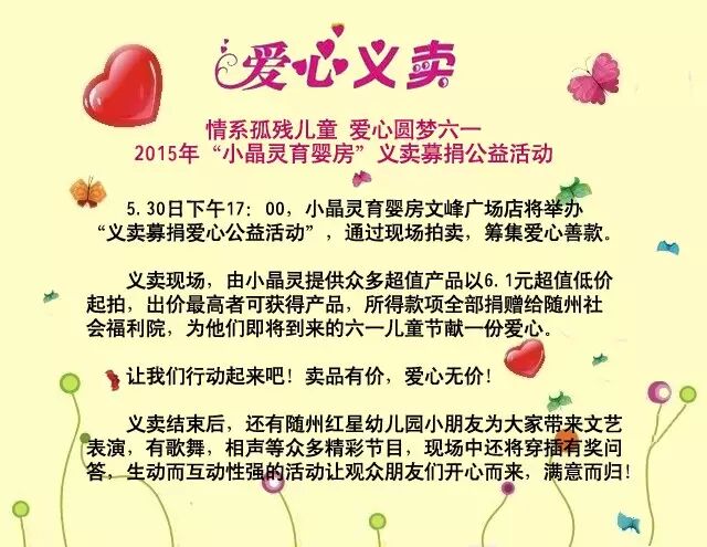 【情系孤残儿童●爱心圆梦六一】5月30日“小晶灵育婴房”义卖募捐公益活动