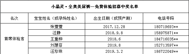 奖励单片体验装2包+2张20元代金券(报名成功全奥美选拔赛的宝宝们可以直接去小晶灵门店领取,每人限领一次)